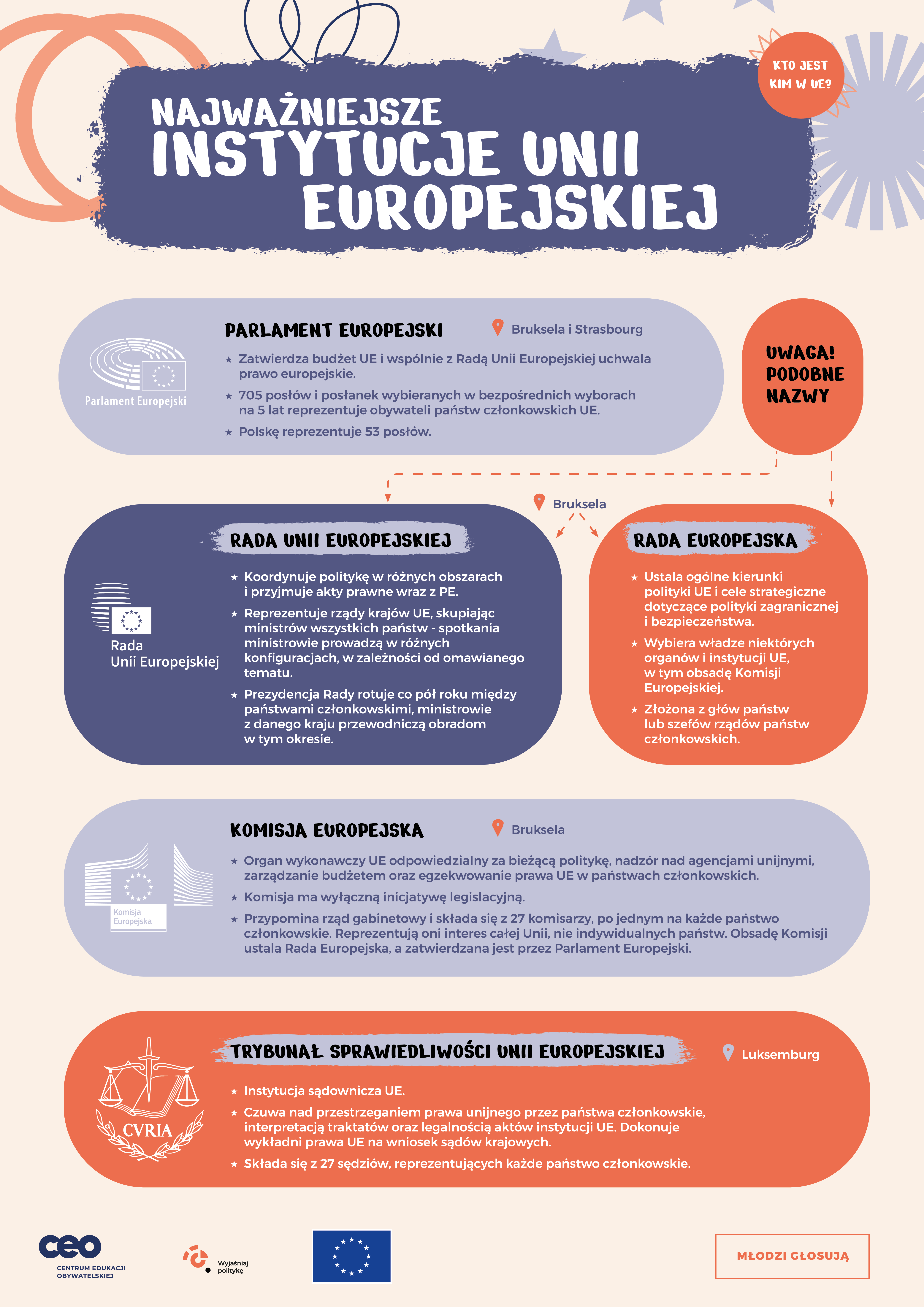 • Infografiki o kompetencjach, instytucjach i parlamencie UE