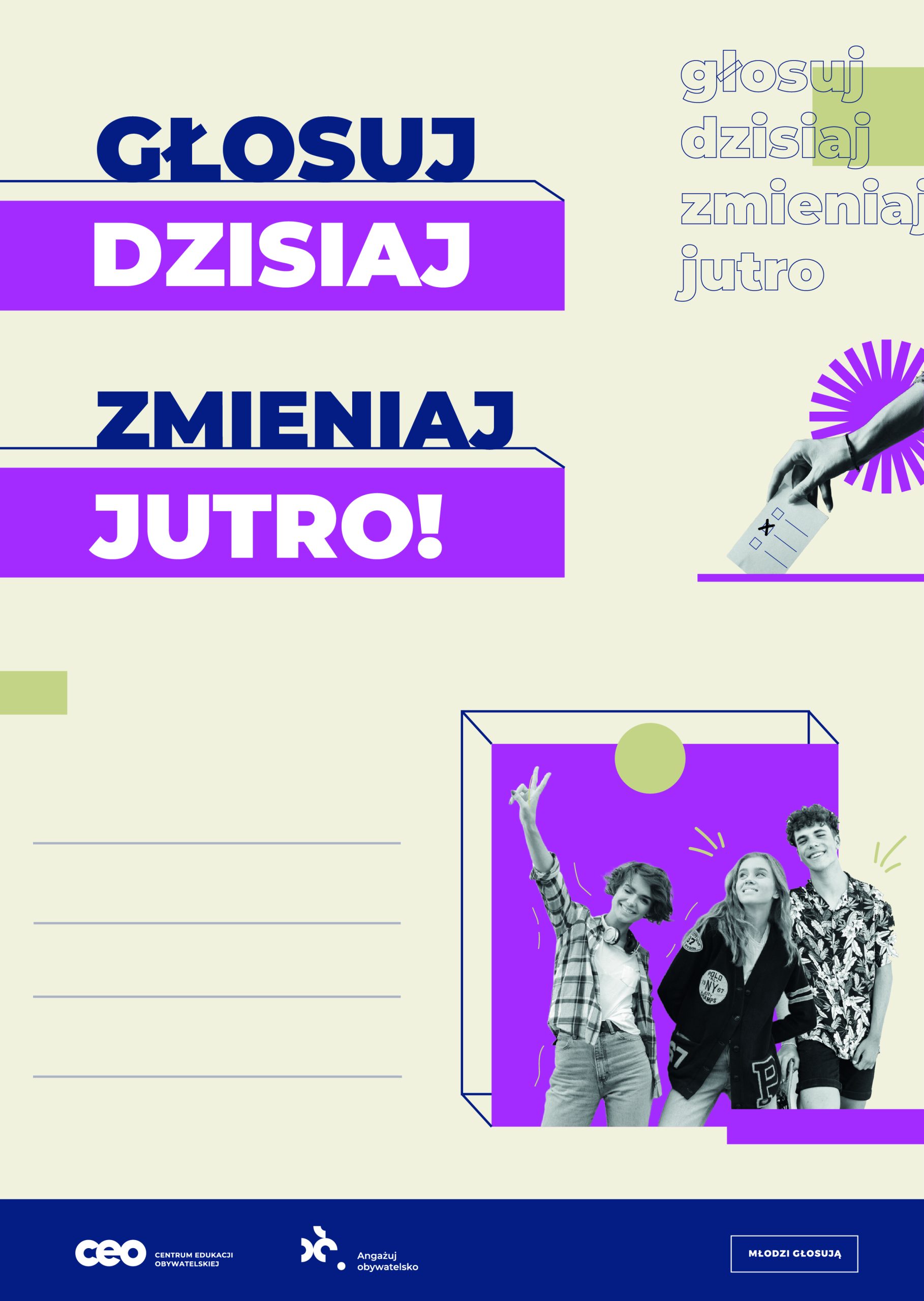 • plakat i wlepkę zachęcającą do głosowania w „Młodzi głosują”. Na plakacie znajdziecie miejsce do wpisania daty i miejsca głosowania.
