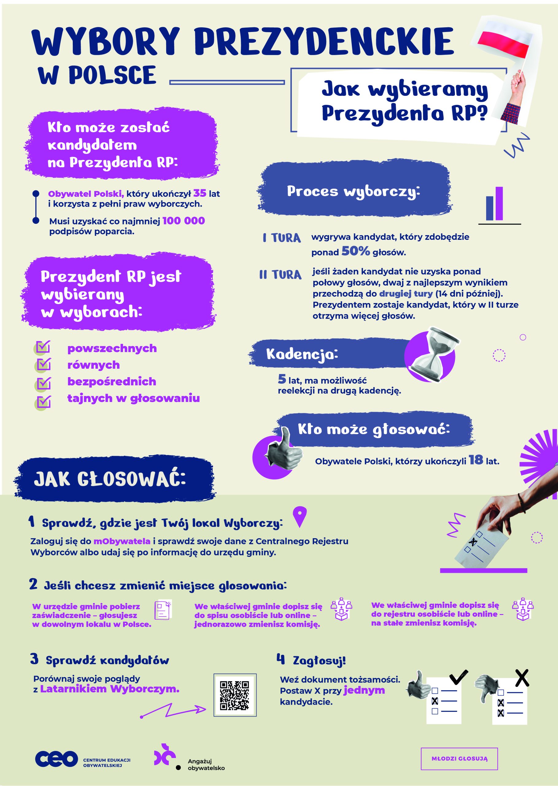 Zbiór infografik o wyborów do Sejmu i Senatu Rzeczpospolitej Polskiej. Plakaty i wlepki z projektu Młodzi Głosują
